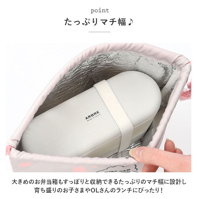 ・大きめのお弁当箱もすっぽりと収納できるたっぷりのマチ幅に設計し、育ち盛りのお子さまやOLさんのランチにぴったり!