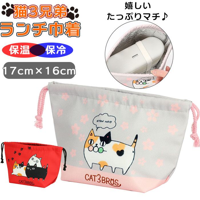 保温 保冷 ランチバッグ 巾着 通販 ランチボックス 巾着袋 ランチ巾着 ランチバック お弁当バッグ お弁当バック お弁当袋 保冷バッグ 保冷バック 袋 ランチ お弁当 保冷保温 猫 ネコ ねこ 猫3兄弟 かわいい