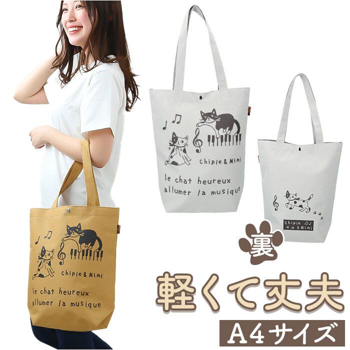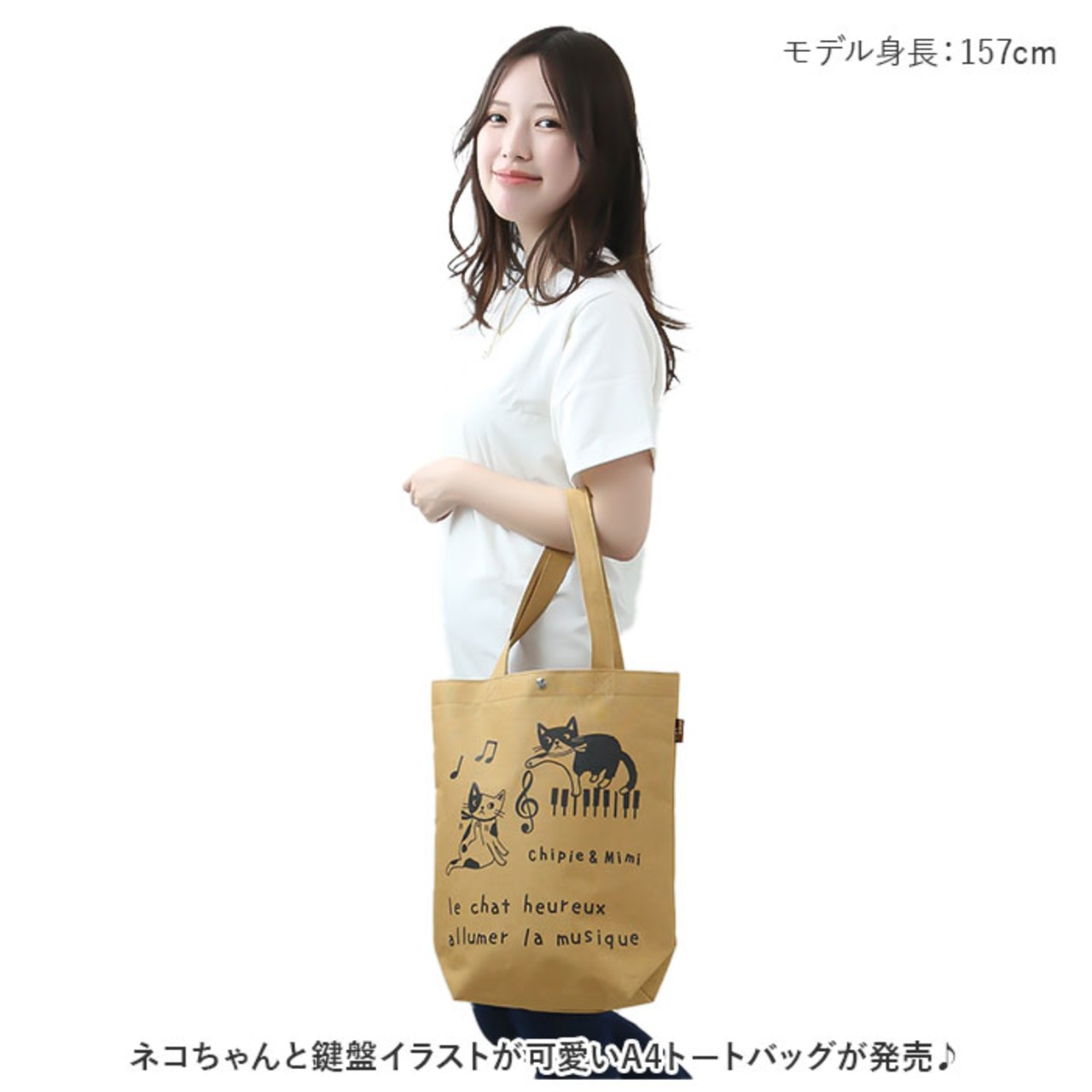 ・ネコちゃんと鍵盤イラストが可愛いA4トートバッグが発売♪