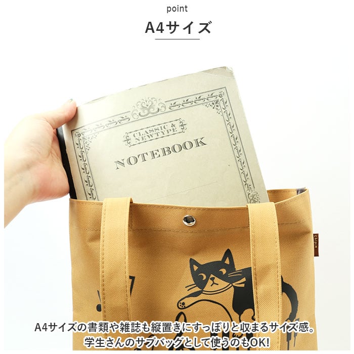 ・A4サイズの書類や雑誌も縦置きにすっぽりと収まるサイズ感。学生さんのサブバッグとして使うのもOK!