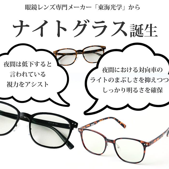 ・眼鏡レンズ専門メーカー東海光学より、夜間の視界をクリアにする「ナイトグラス スマートタイプ」が登場。