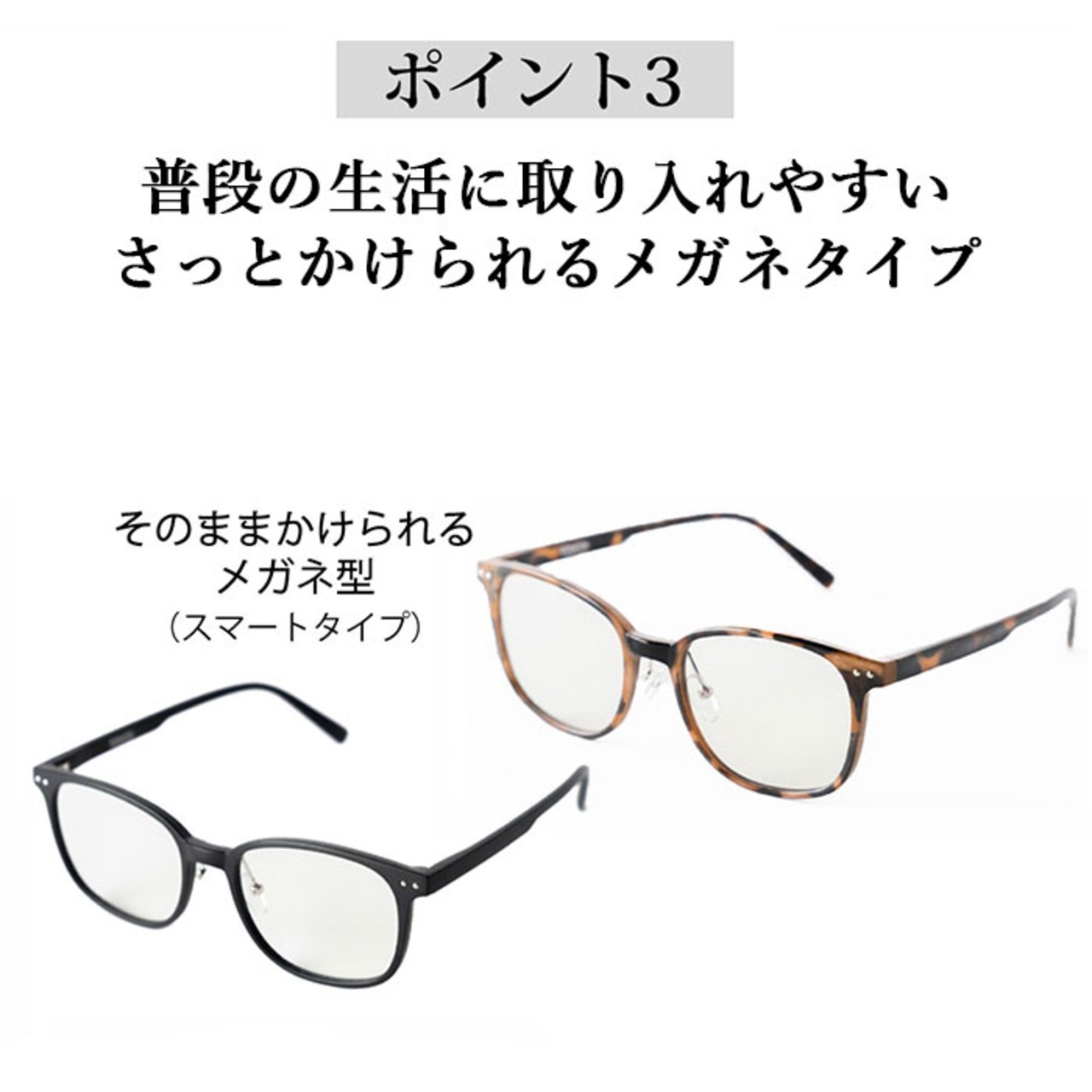 ・フレームのデザインにもこだわった、おしゃれなメガネのようなデザイン♪ナイトグラスとは思えない、スタイリッシュさが魅力。