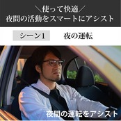・夜の運転時に視界がぼやけやる、対向車のライトがまぶしいなど、夜間に起こる目のお悩みを解決してくれるアイテム。