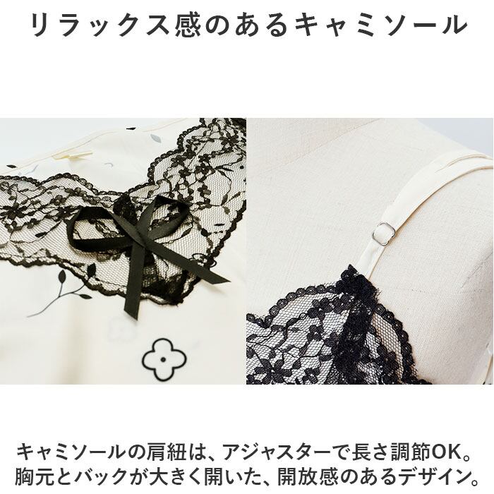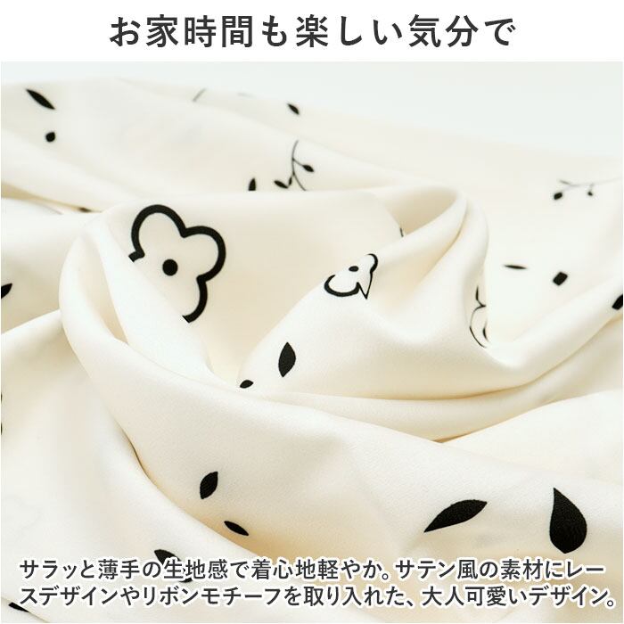 ・サラッと薄手の生地感で着心地軽やか。サテン風の素材にレースデザインやリボンモチーフを取り入れた、大人可愛いデザイン。