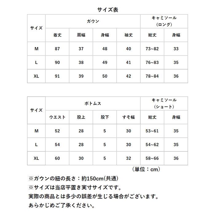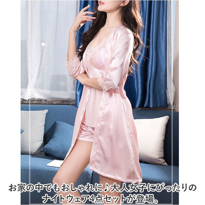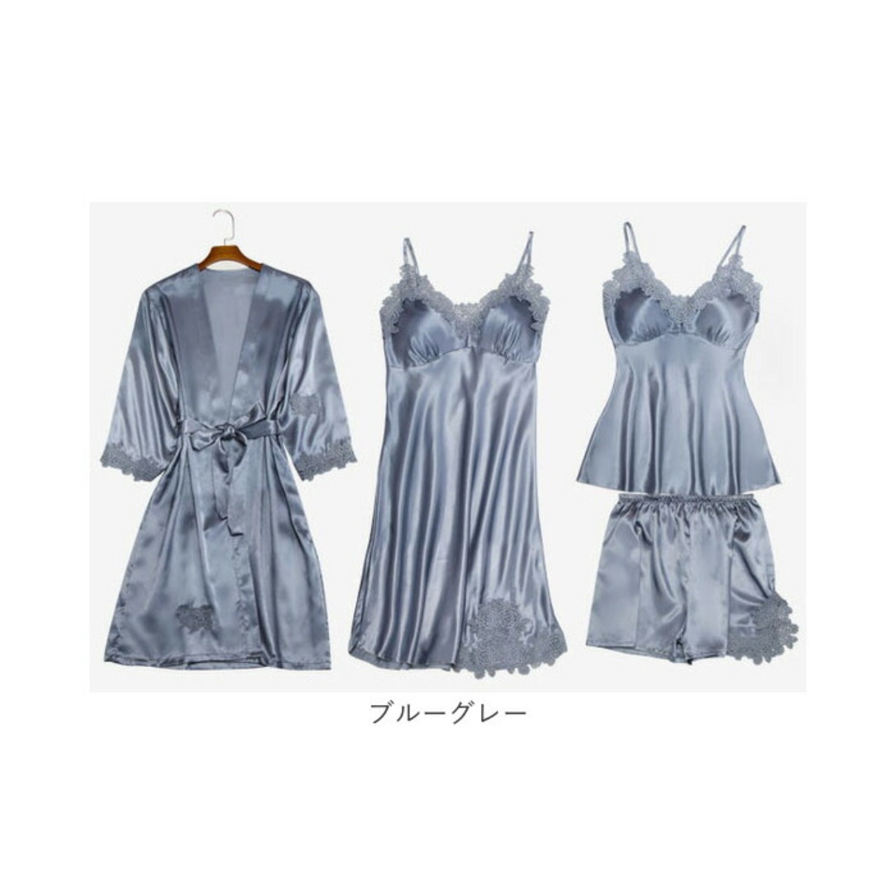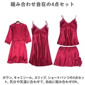 ・ガウン、キャミソール、スリップ、ショートパンツの4点セット。気分や気温に合わせて、自由に組み合わせOK。