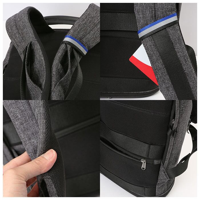 ・ショルダーベルトの付け根には、ダブルファスナーを固定できるセキュリティロック機能、バックパック背面にはシークレットポケットを設け、旅行中の安全にも配慮。