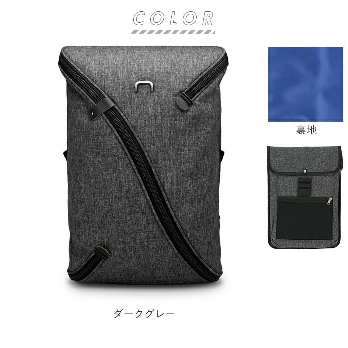 ・S字状ファスナーを開放することで、柔らかい曲線で形づくられたバックパックが風呂敷のように広がるユニークな構造が注目ポイント。