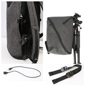 ・バックパック背面左側には、キーハンガー付きファスナー。さらに右側にはネットポケット内蔵ファスナーを配置し、付属のアンカーストラップを使用すれば三脚等のツールを携帯するのに便利。