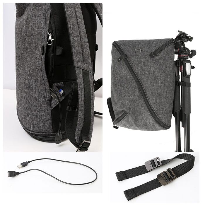 ・モバイルバッテリー等の接続に便利なUSBポートや、音楽好きの方に嬉しいヘッドホンハンガー等、ガジェット類の持ち歩きに便利な工夫が随所に。