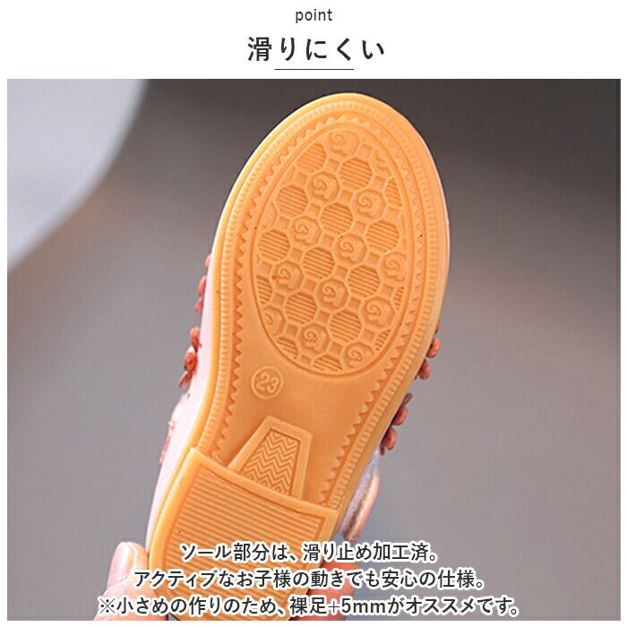 ・ソール部分は、滑り止め加工済。アクティブなお子様の動きでも安心の仕様。