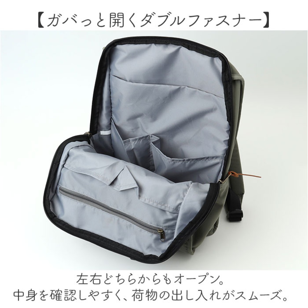 【ガバっと開くダブルファスナー】