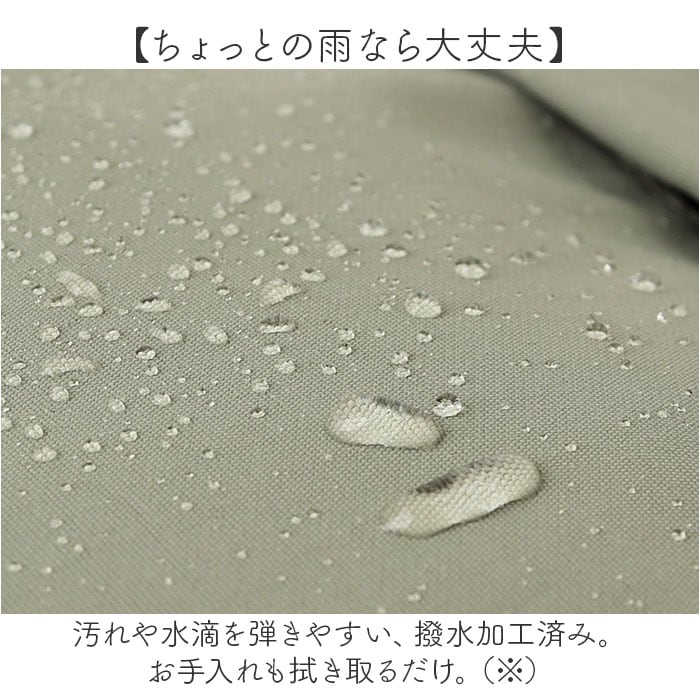 ・汚れや水滴を弾きやすい、撥水加工済み。お手入れも拭き取るだけ。