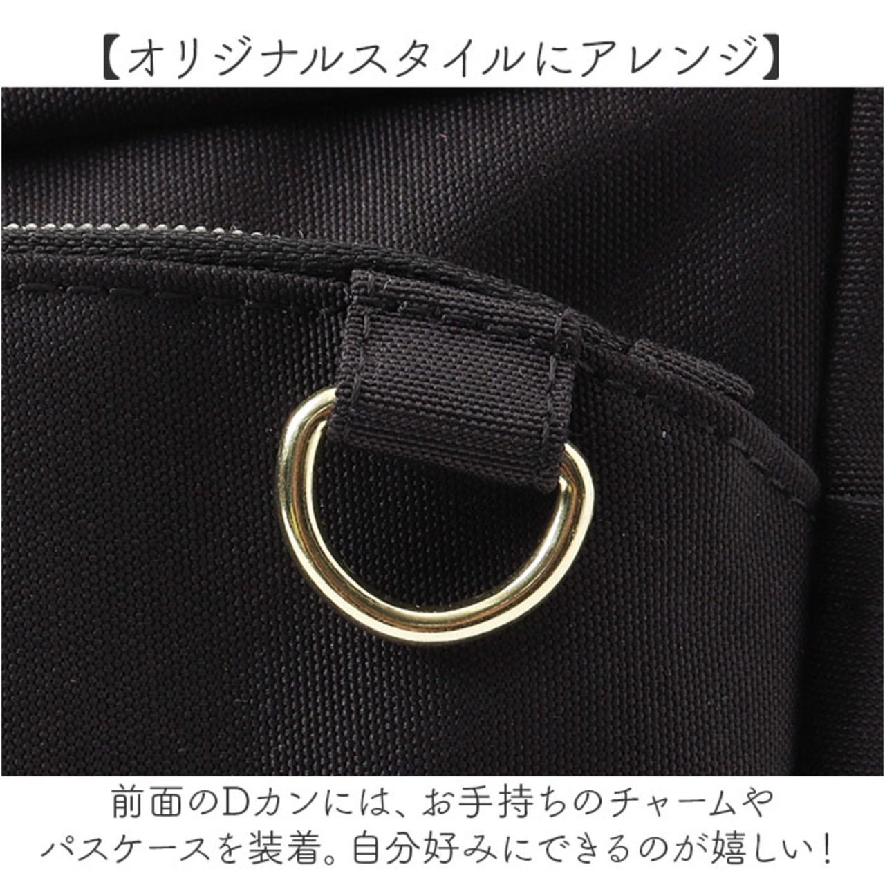 ・前面のDカンには、お手持ちのチャームやパスケースを装着。自分好みにできるのが嬉しい!