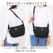 ・ショルダーの長さを調節し、肩掛けや斜め掛け。移動の多い日も快適。