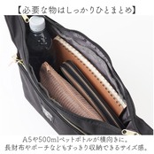 ・A5や500mlペットボトルが横向きに。長財布やポーチなどもすっきり収納できるサイズ感。