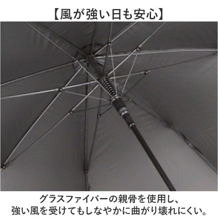 ・グラスファイバーの親骨を使用し、強い風を受けてもしなやかに曲がり壊れにくい。