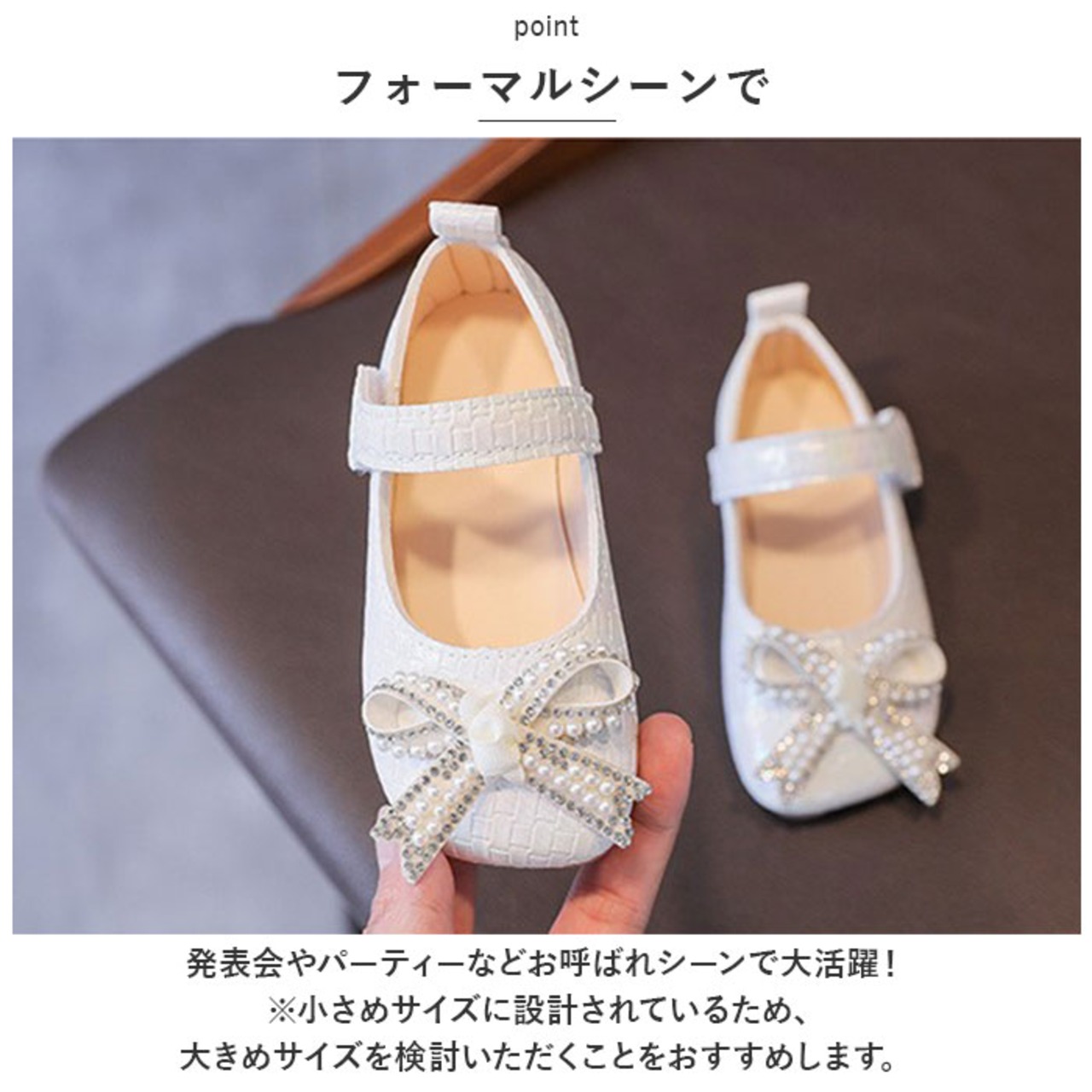 ・発表会やパーティーなどお呼ばれシーンで大活躍!(※小さめサイズに設計されているため、大きめサイズを検討いただくことをおすすめします。)