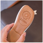 ・光沢のあるPU素材を使用。つま先部分に配置された立体的なリボンには、イミテーションパールや、キラッと光るストーンをプラス♪