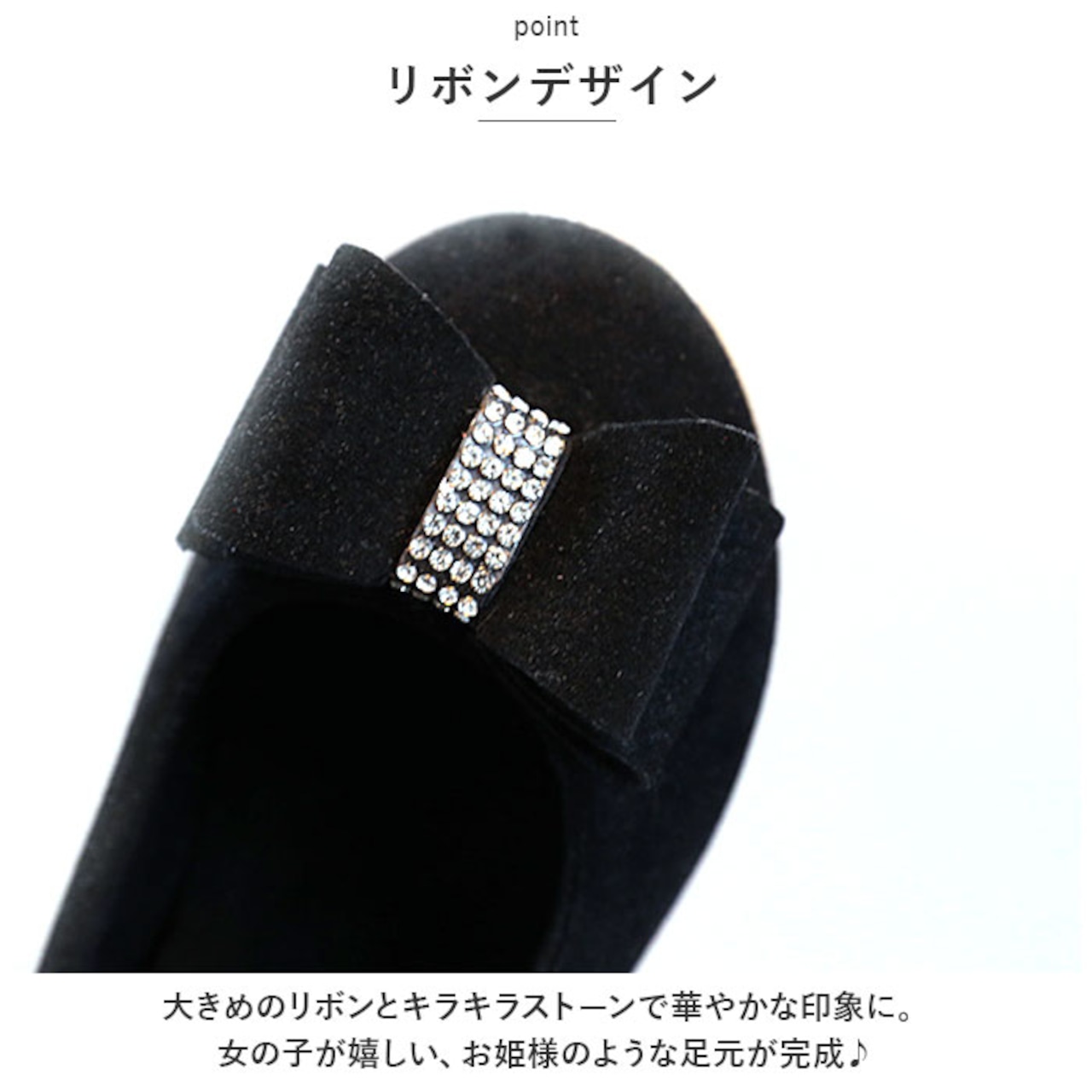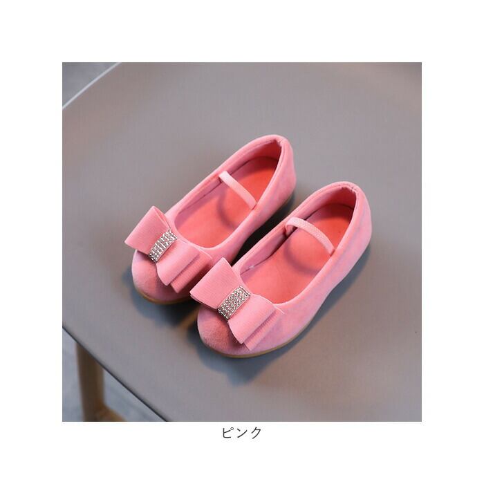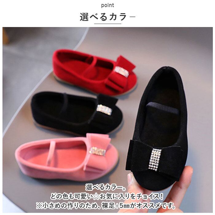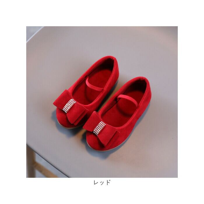 ・大きめのリボンとキラキラストーンで華やかな印象に。女の子が嬉しい、お姫様のような足元が完成♪