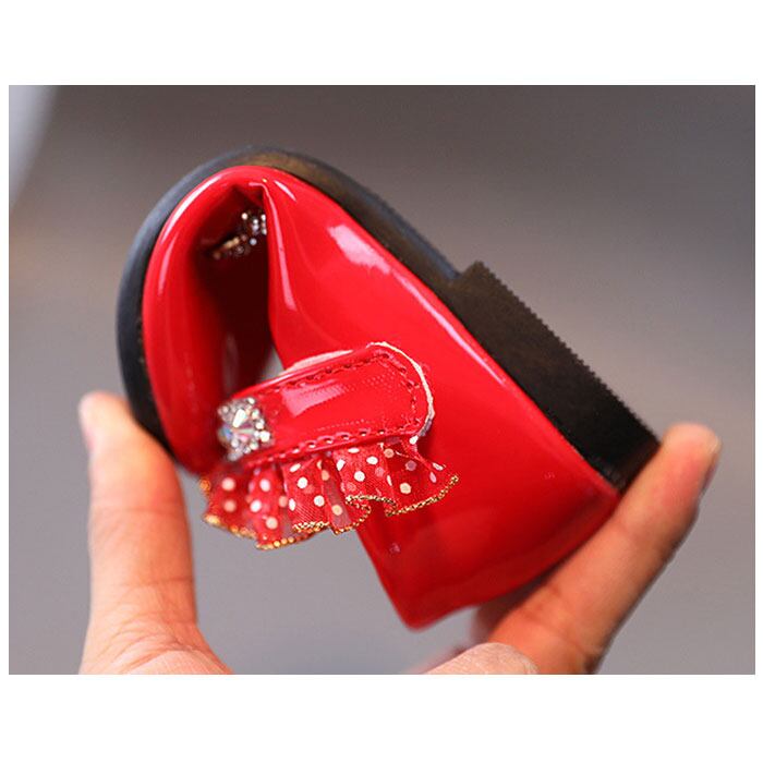 ・エナメル調のパンプスなので、きっちりとしたフォーマルスタイルにマッチ。お呼ばれシーンや発表会、入園式や卒園式などで活躍。