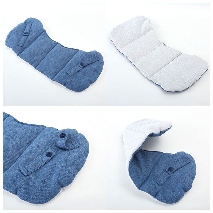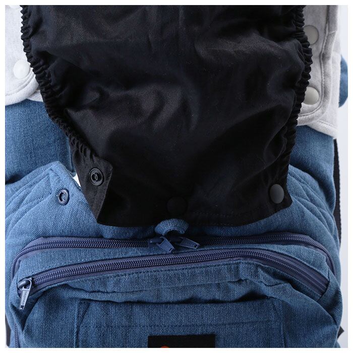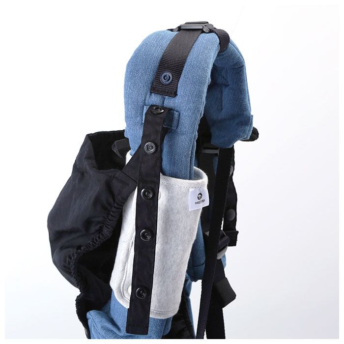 ・眠った赤ちゃんの頭を優しくホールドする着脱簡単フード付き。