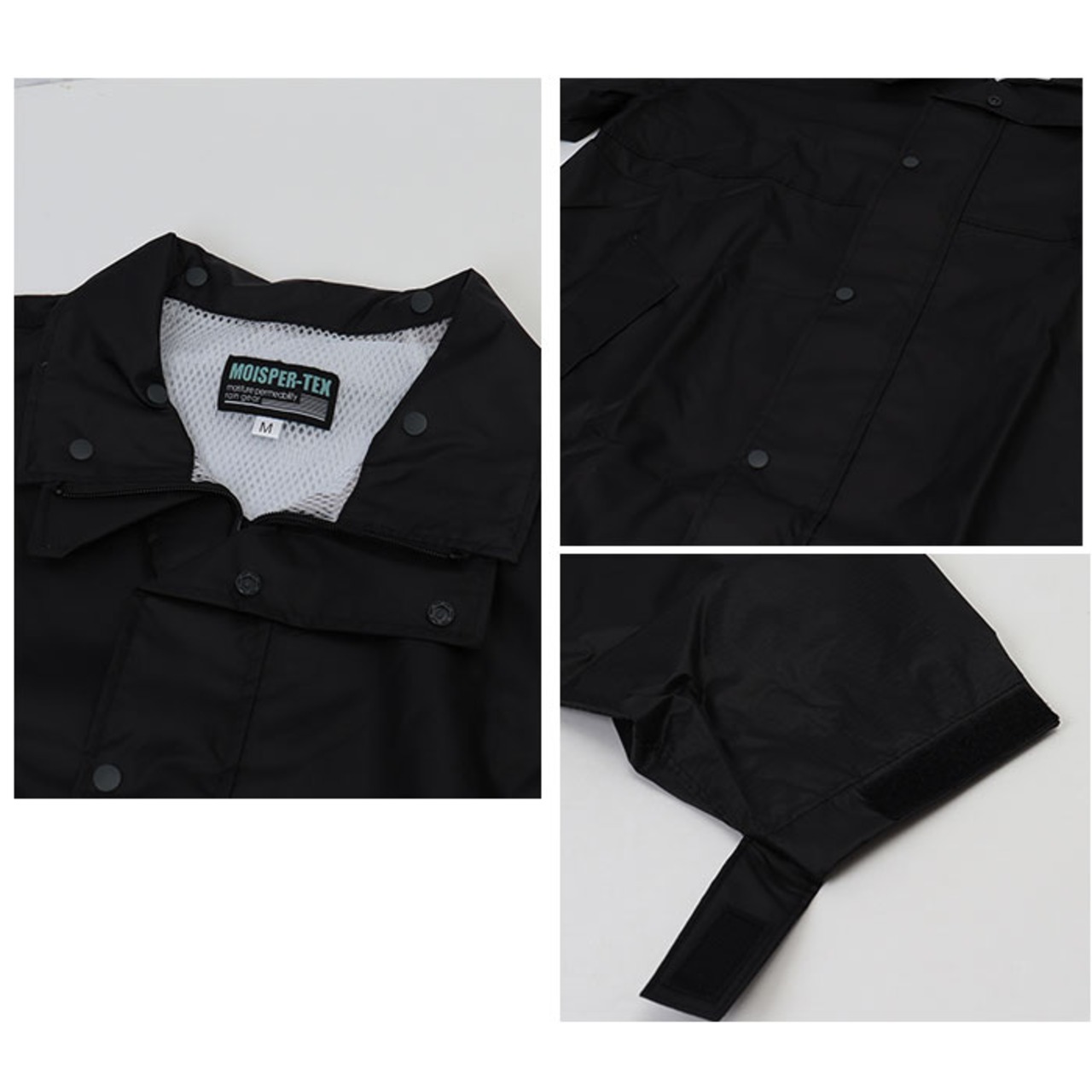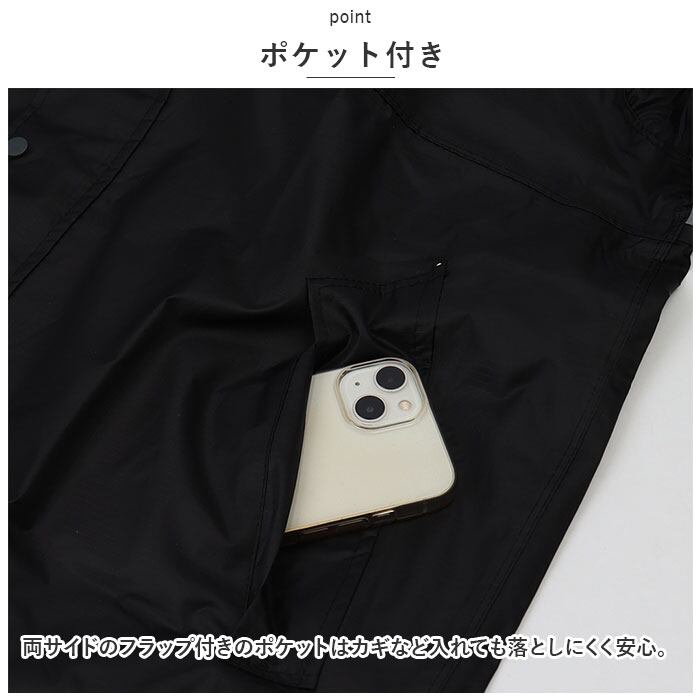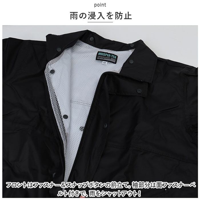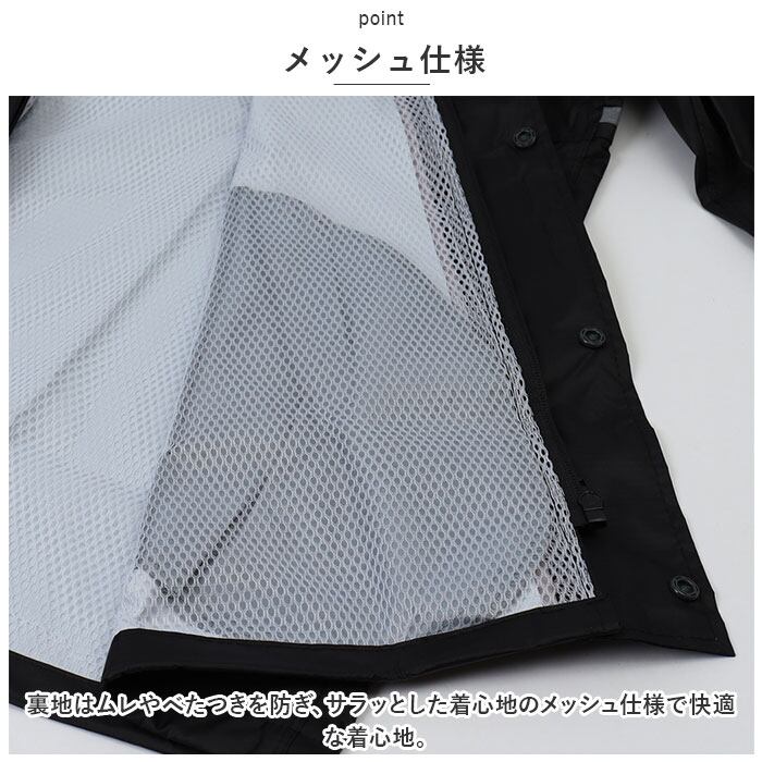 ・フロントはファスナー&スナップボタンの前立て。袖部分は面ファスナーベルト付きで、雨をシャットアウト!