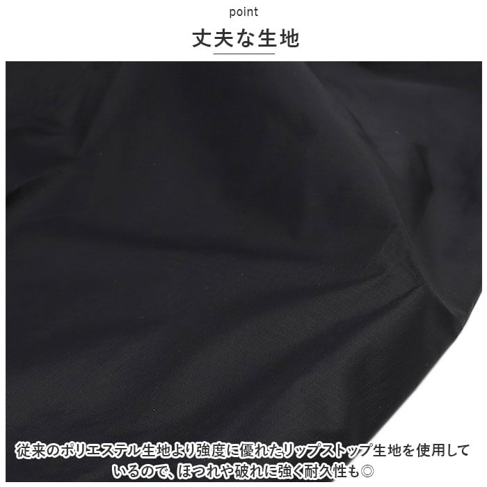 ・従来のポリエステル生地より強度に優れたリップストップ生地を使用しているので、ほつれや破れに強く耐久性も◎