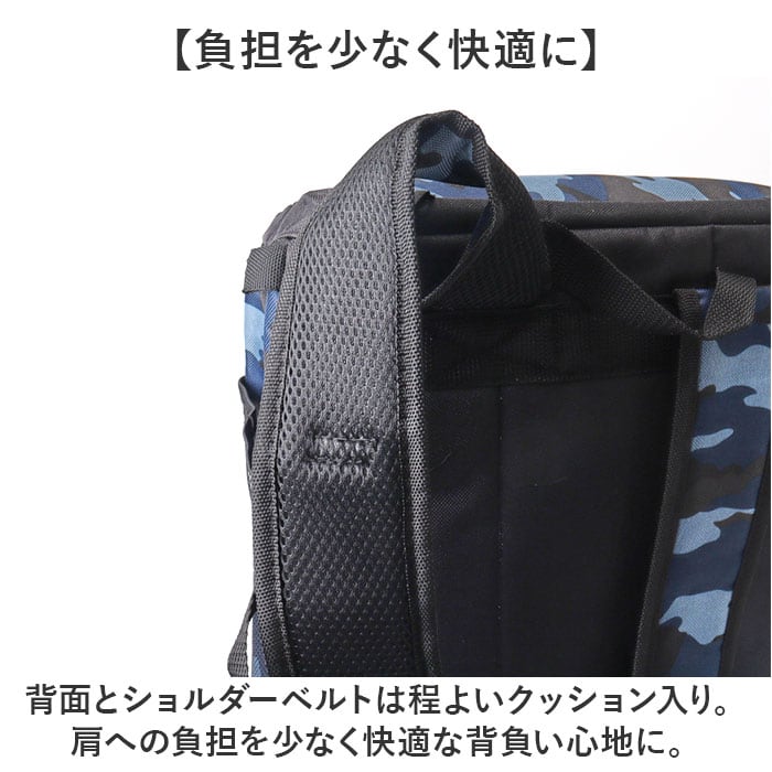 ・背面とショルダーベルトは程よいクッション入り。肩への負担を少なく快適な背負い心地に。