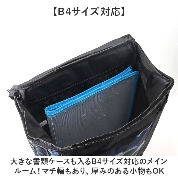 ・大きな書類ケースも入るB4サイズ対応のメインルーム!マチ幅もあり、厚みのある小物もOK