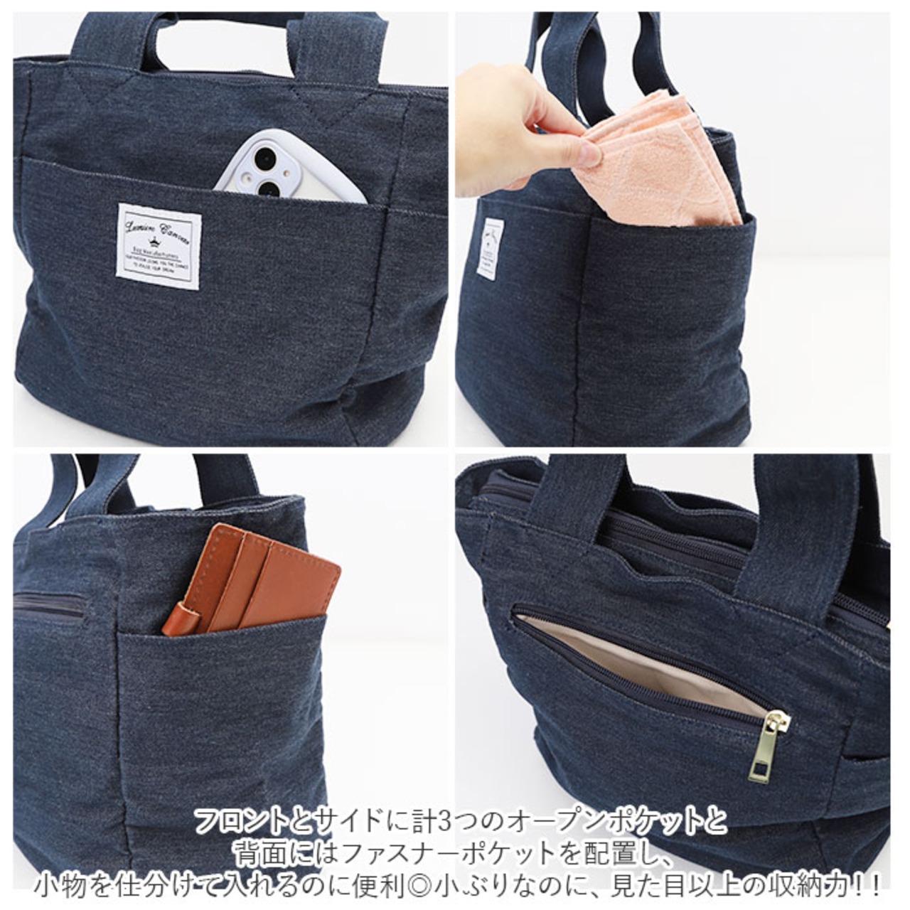 ・フロントとサイドに計3つのオープンポケットと背面にはファスナーポケットを配置し、小物を仕分けて入れるのに便利◎小ぶりなのに、見た目以上の収納力!!