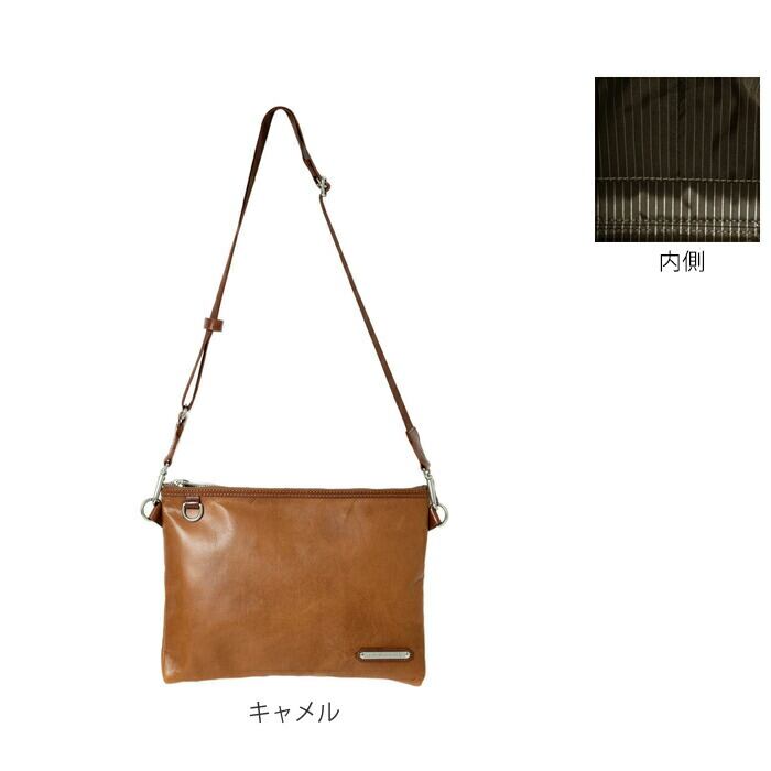 ・散歩や町歩き等に最適な軽快な印象の本革サコッシュ。斜め掛けでも片掛けでも様になる、A4より少しだけ小さめなサイズ感。