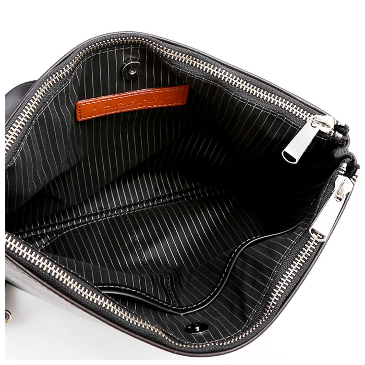 ・バッグはメイン収納が3つに仕切られており、前面と背面は口元にファスナーが付いているので財布などの貴重品の収納に。