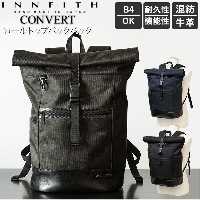 リュック メンズ おしゃれ 通販 大容量 ビジネス A4 B4 通勤 通学 シンプル 丈夫 ナイロン ビジネスリュック 黒 ブラック ネイビー カーキ バックパック ロールトップバックパック INNFITH CONVERT インフィス コンバート 557204
