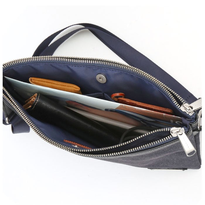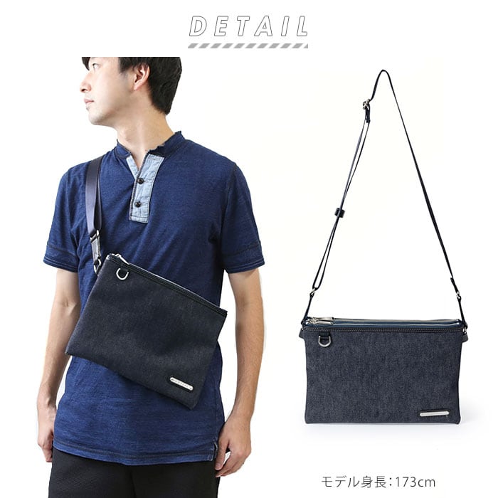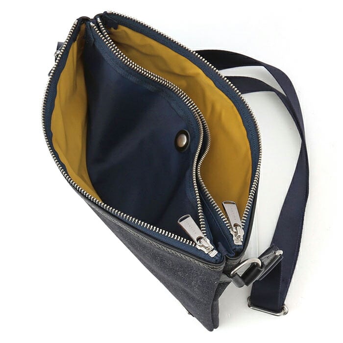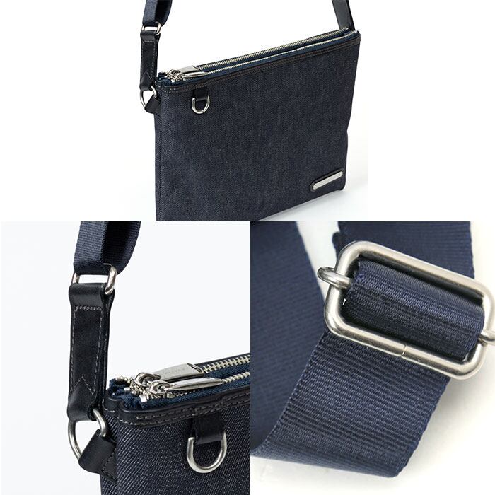 ・サコッシュの本体生地には、先染め糸で織られた岡山デニムを使用。深みのあるインディゴブルーが清々しい印象。