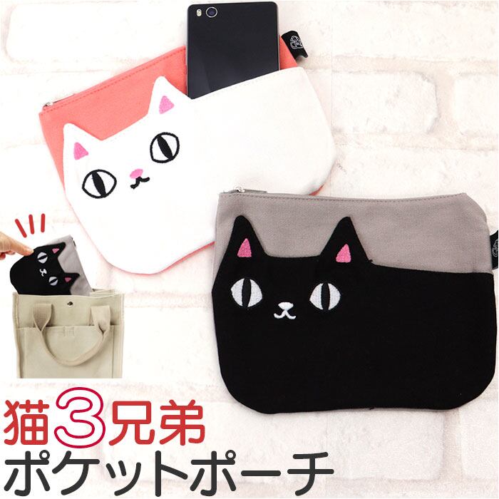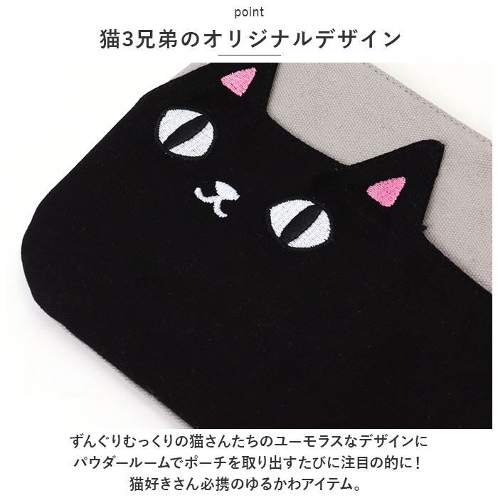 ねこ ポーチ 通販 猫三兄弟 小物入れ ポケットポーチ メイクポーチ ペンポーチ キャラクター グッズ 猫 ネコ 猫3兄弟 子供用 子ども 子供 レディース キッズ こども 贈り物 ギフト 雑貨