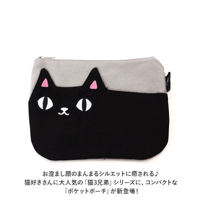 ・お澄まし顔のまんまるシルエットに癒される♪猫好きさんに大人気の「猫3兄弟」シリーズに、コンパクトな「ポケットポーチ」が新登場!