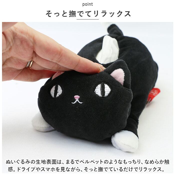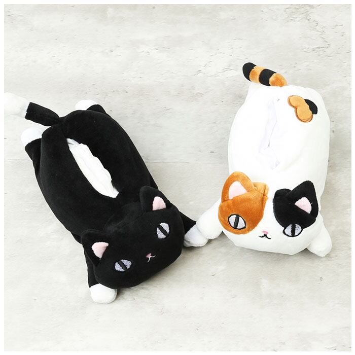 ・ずんぐりむっくり猫さんの背中に、ポケットティッシュをIN!生活感のでがちなティッシュを可愛くデコれる、ぬいぐるみみたいなティッシュケース。