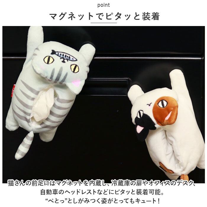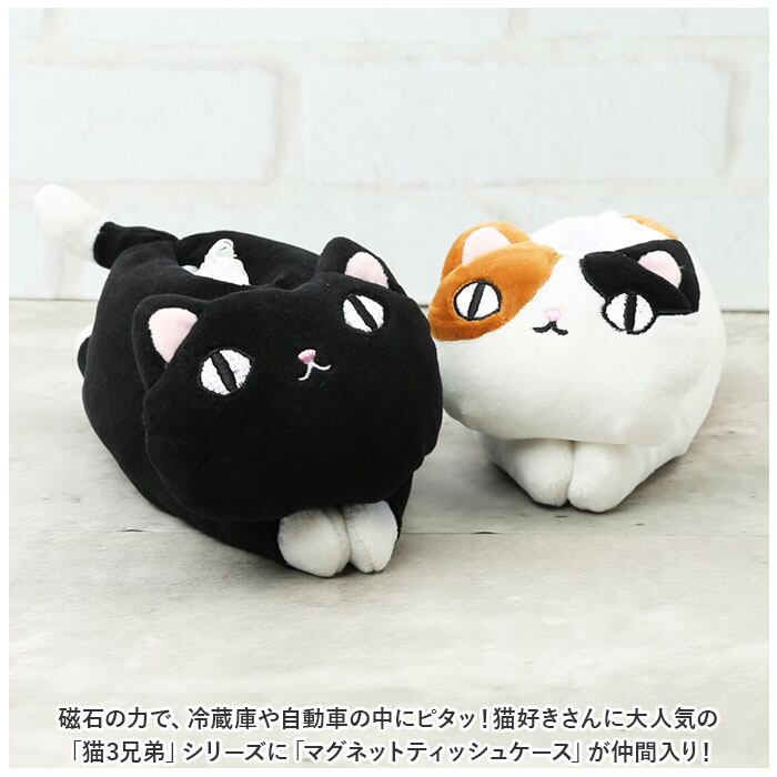 ・磁石の力で、冷蔵庫や自動車の中にピタッ!猫好きさんに大人気の「猫3兄弟」シリーズに「マグネットティッシュケース」が仲間入り!