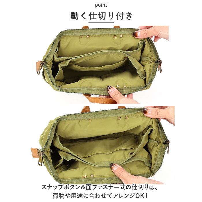 ・スナップボタン&面ファスナー式の仕切りは、荷物や用途に合わせてアレンジOK!