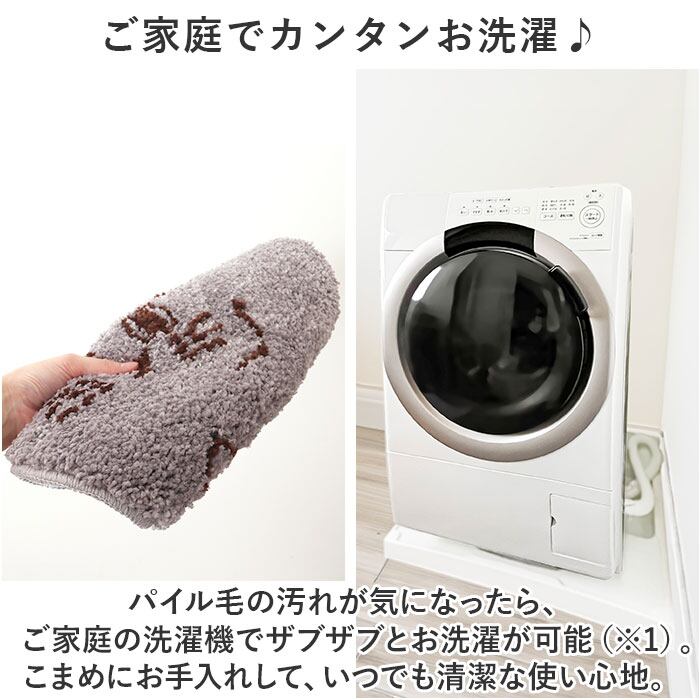 ※1.パイル毛の汚れが気になったら、ご家庭の洗濯機でザブザブとお洗濯が可能。・・・お洗濯の際は、洗濯ネットをご使用ください。