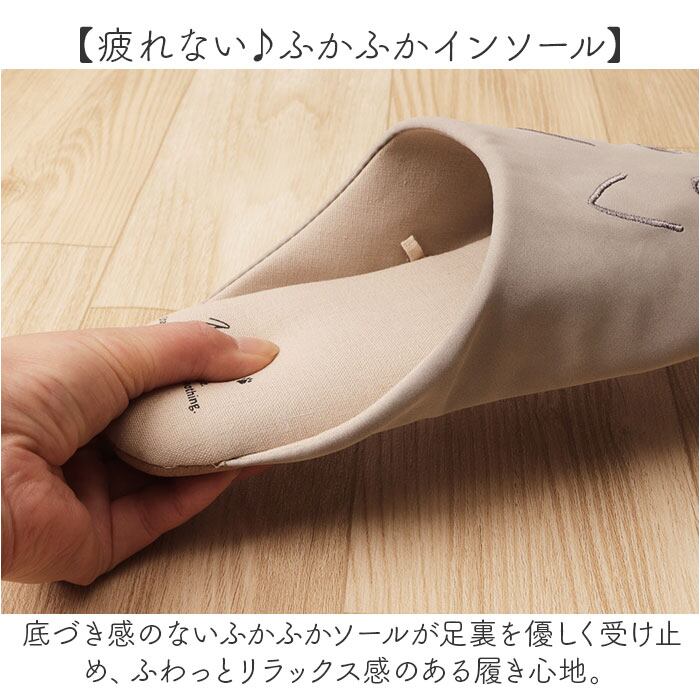 ・スリッパ底面はフローリングの上でも滑りにくく、静音効果のあるポリエステルスエードを採用。