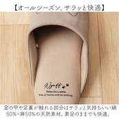 ・足の甲や足裏が触れる部分はサラッと気持ちいい綿50%・麻50%の天然素材。素足のままでも快適。