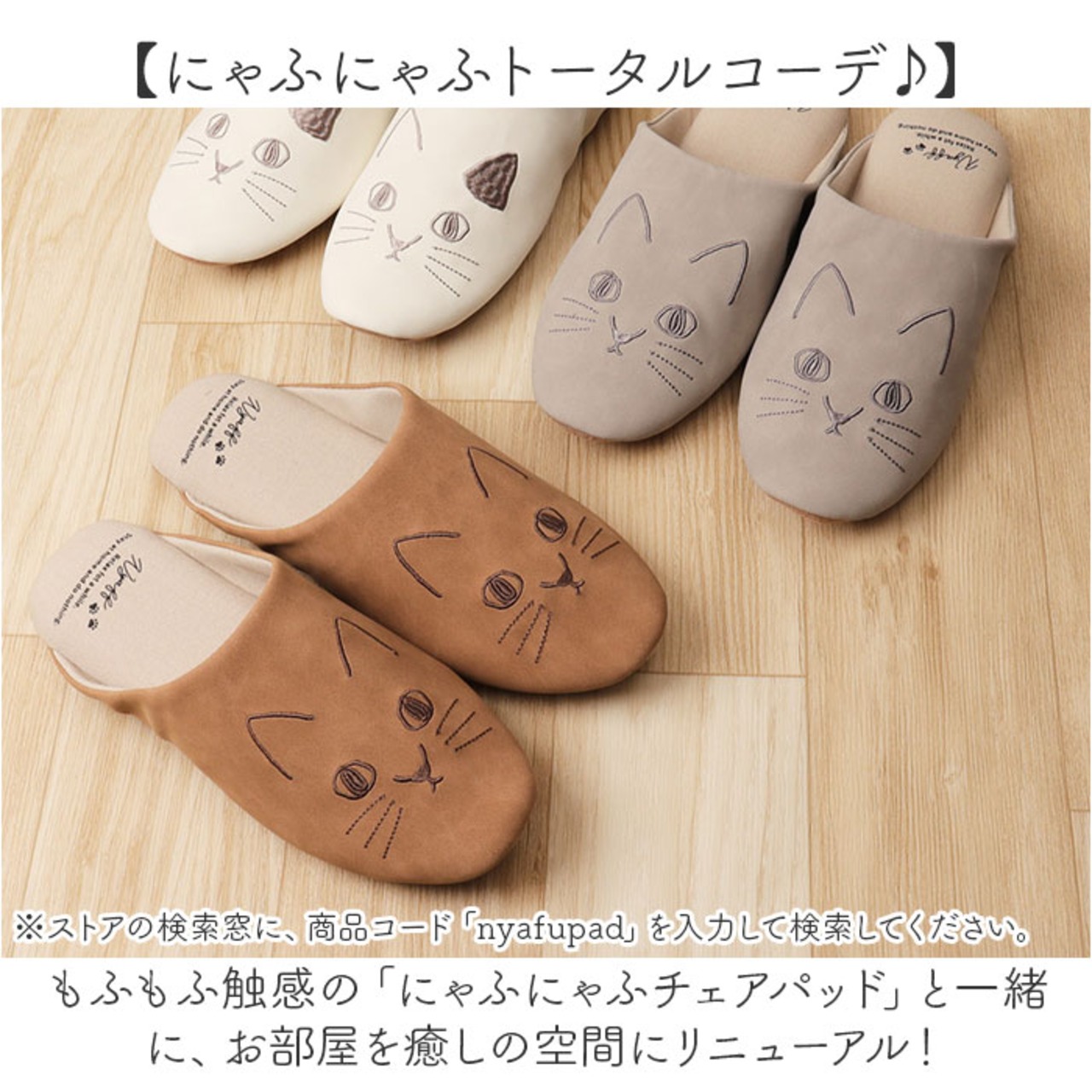 ・※「にゃふにゃふチェアパッド」は、別商品ページでお買い求めいただけます。ストアの検索窓に、英数字の商品コード「nyafupad」を入力して、検索してください。