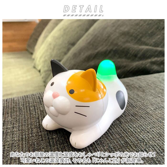 ・あなたのお部屋の温度と湿度をおしゃべりとシッポの光でお知らせ!可愛いねこの温湿度計、その名も「にゃんこ計」が新登場。