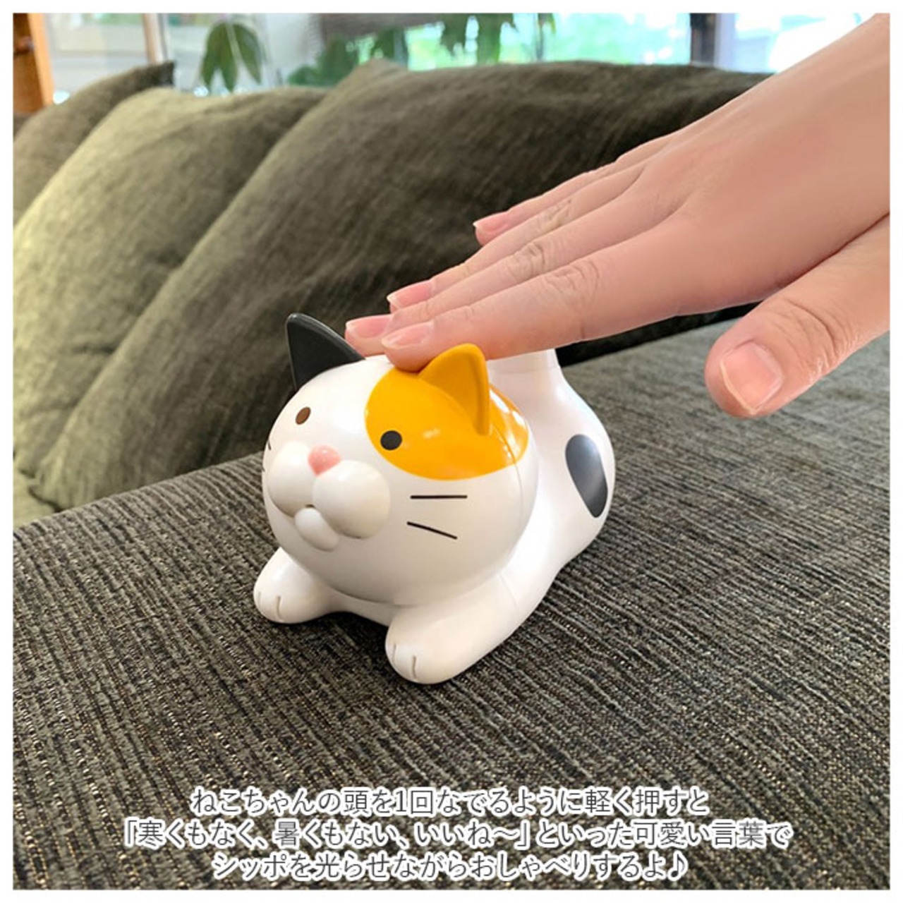 ・ねこちゃんの頭を1回なでるように軽く押すと、「寒くもなく、暑くもない、いいね~」といった可愛い言葉で、シッポを光らせながらおしゃべりするよ♪