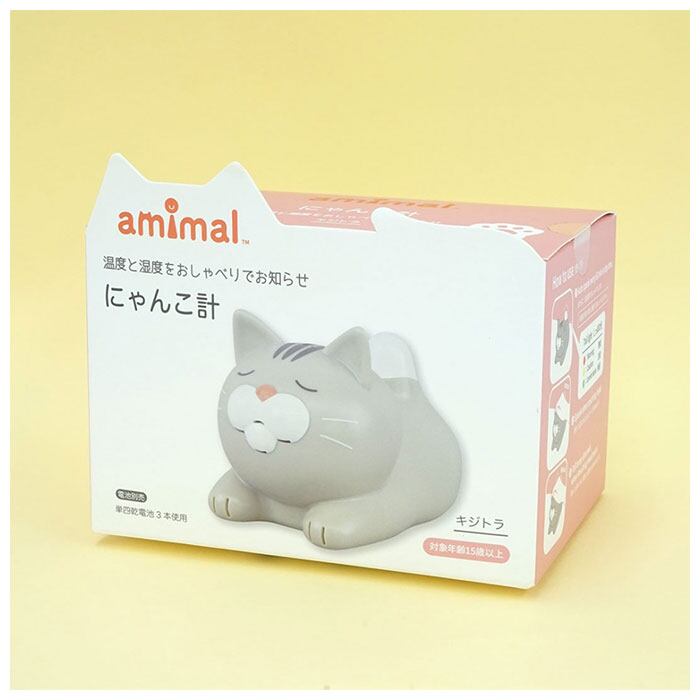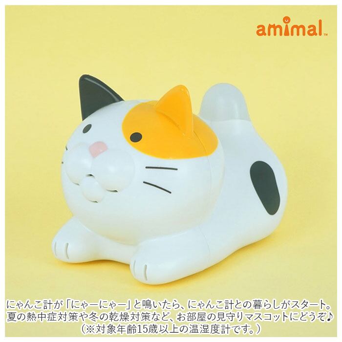 ・にゃんこ計が「にゃーにゃー」と鳴いたら、にゃんこ計との暮らしがスタート。夏の熱中症対策や冬の乾燥対策など、お部屋の見守りマスコットにどうぞ♪(※対象年齢15歳以上の温湿度計です。)
