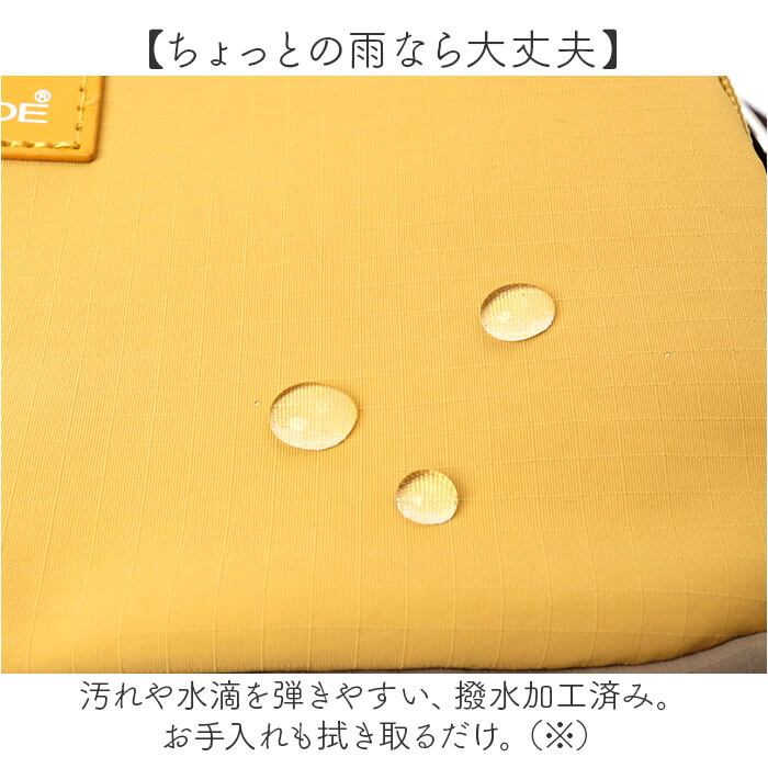 ・汚れや水滴を弾きやすい、撥水加工済み。お手入れも拭き取るだけ。
