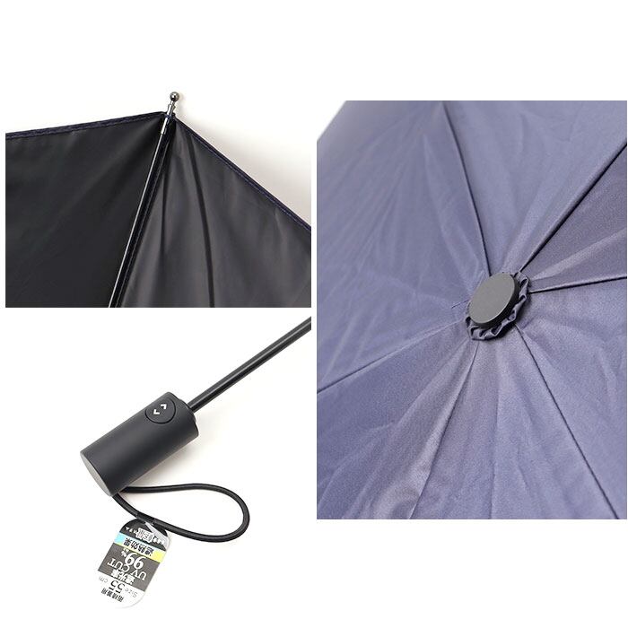 ・親骨6本構造を採用。他の自動開閉傘と比べ骨を少なくすることで軽量&スリムな作りに。【スナップボタン式のベルト】