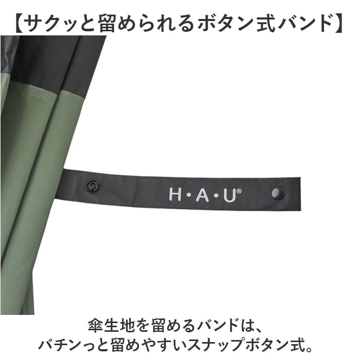 ・傘生地を留めるバンドは、バチンっと留めやすいスナップボタン式。
