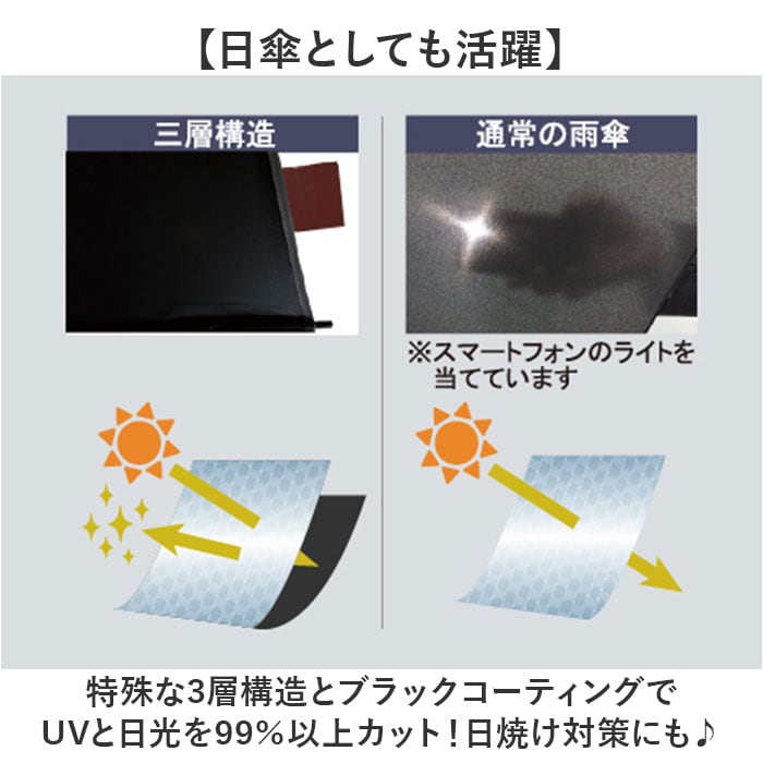 ・特殊な3層構造とブラックコーティングでUVと日光を99%以上カット!日焼け対策にも♪